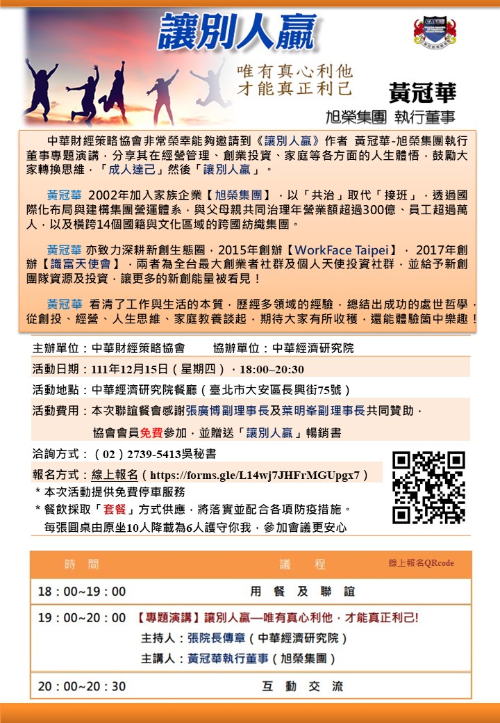 【活動訊息】12月15日(四)專題演講暨歲末聯誼餐會