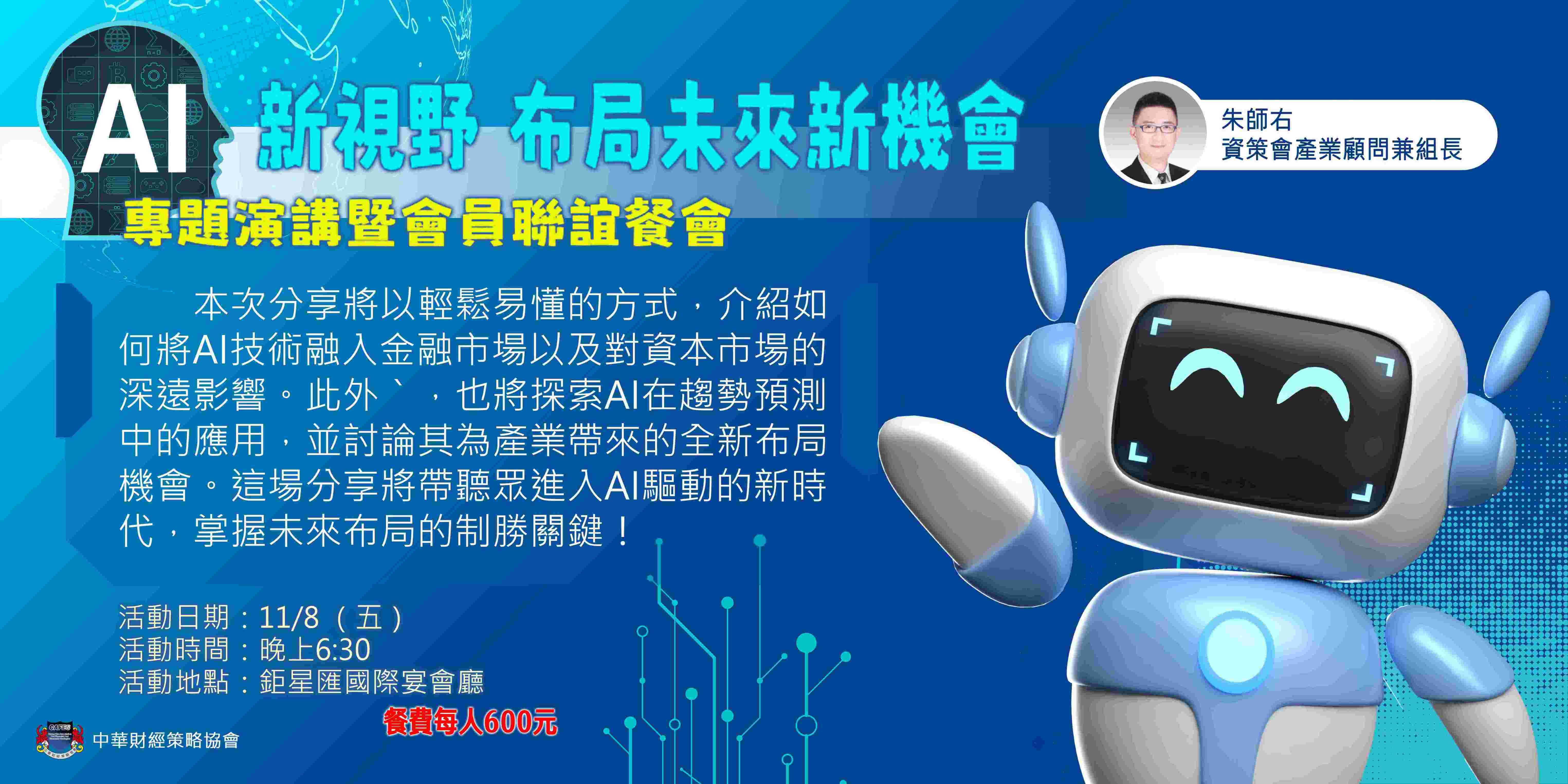 【活動訊息】11月8日(五)專題演講暨會員聯誼餐會